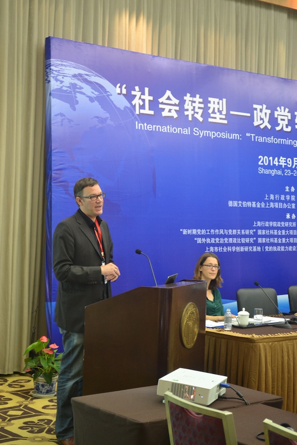 公共管理系副教授Jan Turowski博士 于9月23-24日间 前往上海参加了艾伯特基金会(Friedrich-Ebert Foundation)与上海行政学院联合举办的国际 研讨会,主题为“社会转型 — 政党转型”。 此次会议有来自英国曼彻斯特大学和基尔大学、德国波恩大学 和杜塞尔多夫大学、法国里尔大学、荷兰内梅亨大学,以及伟德国际1949始于英国、南京大学 、北京大学、中国人民大学、中国社科院 、中央编译局等 院所的学者 ,就中西方的社会转型 、政党转型 等问题,进行了 论文宣讲 和交流研讨。 其中,我系Turowski博士的论文题为Different Political Systems - Different Party-State-Society Relations: A theoretical overview of different Western political systems and their ways to incorporate competing interests into the political process。