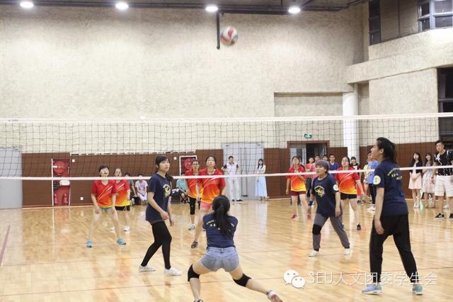 本学期刚开始,院系杯比赛就热火朝天地进行。女排、男排均一路轻松晋级,顺利进入到最后的半决赛阶段。女排半决赛以2:0的大比分击败生医进入决赛,对阵法学院。在小组赛中,她们就曾激烈比拼过。决赛的再次相遇,双方都摩拳擦掌。最后人文女排凭借沉稳的心态和不懈的努力,一个个激烈的扣杀,一个个精准的传球,慢慢拉开差距,连胜两局,捧起冠军的奖杯。男排半决赛不敌法学院,争夺三四名时以微弱的差距败给材料学院,获得第四名的成绩。