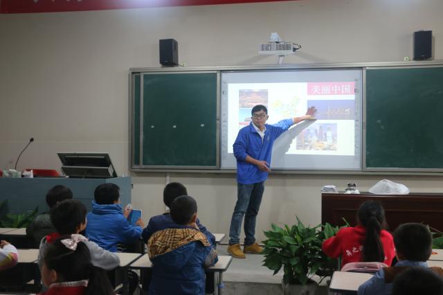 随后,由研究生代表吴天宝向孩子们介绍美丽中国,当那些吸引着无数游客慕名前往的名胜古迹映入在孩子们的眼帘时,他们眼神里的渴望深深烙印在了每一个队员的心中。我们鼓励他们一定要奋发向上、努力学习,今后走出家乡,为祖国的繁荣发展做出贡献。