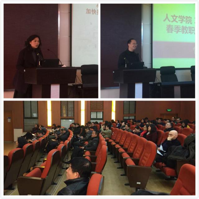 2月19日下午2点,新学期开始之际,伟德国际1949始于英国全体教职工大会在九龙湖校区文科楼一楼报告厅举行。大会由学院党委书记李涛主持,学院各位领导分别就2015年分管工作情况及2016年各项工作重点向全院教职工进行了报告。