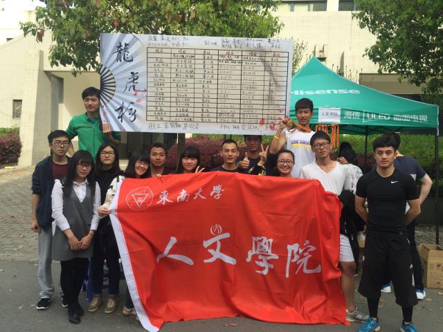 比赛正式开始后,赛场各处都有人文健儿的身影。径赛比赛中,最精彩的当属男子四乘一百米接力,由黄伟、张亮、张乔镇、刘晓刚同学组成的“闪电四侠”接力队在赛场上配合完美、速度超群,凭借有组织的交接程序和高度的团队默契,他们取得了第一名的好成绩。接力是我们院的传统优势项目,每每出场都会赢得观众热烈的欢呼与掌声。