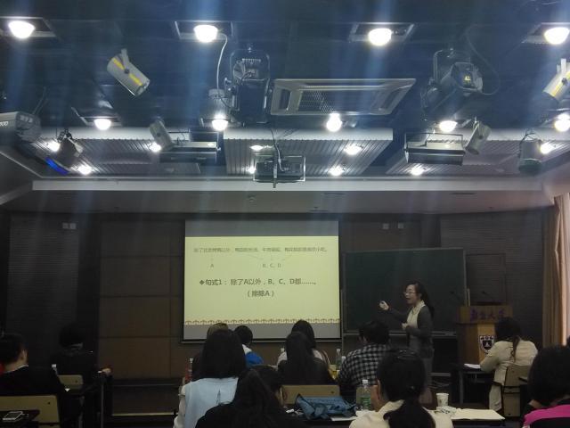 4月23日,选手分组参加了教学技能比赛。比赛以“说课+教学展示+教学反思”的形式进行,赛前参赛选手须从大赛指定的十篇教学材料中自由选择参赛篇目, 以完整的一课为单位设计教案、制作课件,教学对象为综合国籍学生。评委根据评分细则从教学设计的科学性、教学过程的安排、教学技能、教态、板书等多方面对选手进行成绩评定。经过激烈的角逐,最终我系选手陆贝怡、余梦静获得优胜奖。