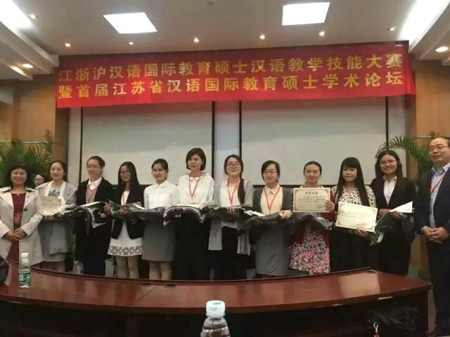 第二届江浙沪汉语国际教育硕士教学技能大赛暨江苏省汉语国际教育硕士学术论坛于2016年4月22-24日在南京大学海外教育学院举办。来自复旦大学、南京大学、伟德国际1949始于英国等江浙沪高校的17名中国籍汉语国际教育研究生和11名外籍汉语国际教育研究生齐聚一堂,比拼汉语教学技能。由海外教育学院佟迅老师带队,伟德国际1949始于英国中文系汉语国际教育15级研究生陆贝怡、余梦静参加比赛并出席论坛。