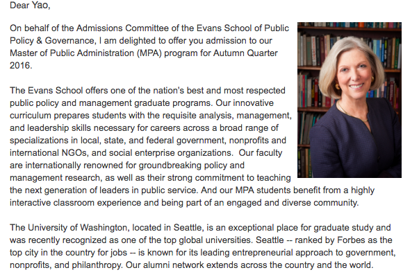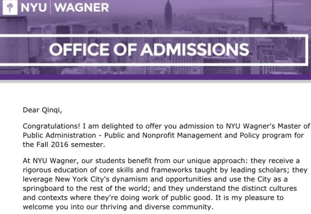 耿瑶,绩点3.55/4.5,托福104分,收到乔治华盛顿大学、华盛顿大学、美国大学等众多名校录取通知,最终确定华盛顿大学。