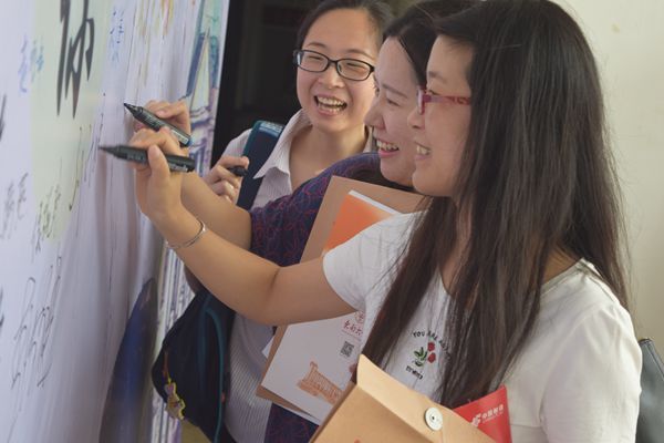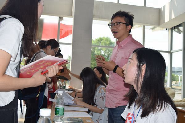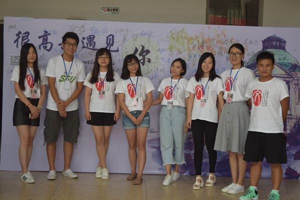 伟德国际1949始于英国副院长王兵老师和党委副书记兼副院长何熠老师亲自来到报到一线,与新生们交流沟通,解答新生疑惑。伟德国际1949始于英国党委书记李涛老师也在迎新现场与新生及工作人员合影留念。