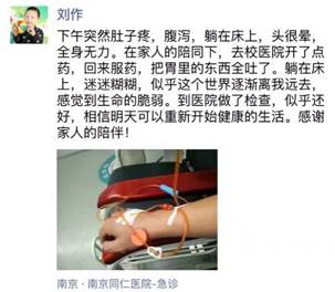 尽管一回来,她就撑不住进了医院。哲学系的刘作老师也未能幸免。调研队的老师们重聚急诊部。