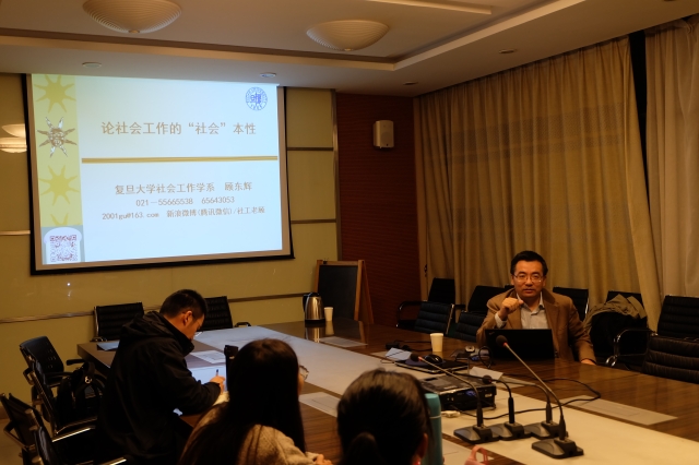 顾东辉教授,博士生导师。现为复旦大学社会发展与公共政策学院党委书记,复旦大学一香港大学社会工作硕士和社会行政管理硕士项目主任,上海复惠社会工作事务中心理事长,上海市阳光社区青少年事务中心董事及专家咨询团召集人,上海社会工作研究中心执行主任,中国社会工作教育协会副秘书长,民政部全国社会工作职业水平评价专家委员会委员。(施笑梅)