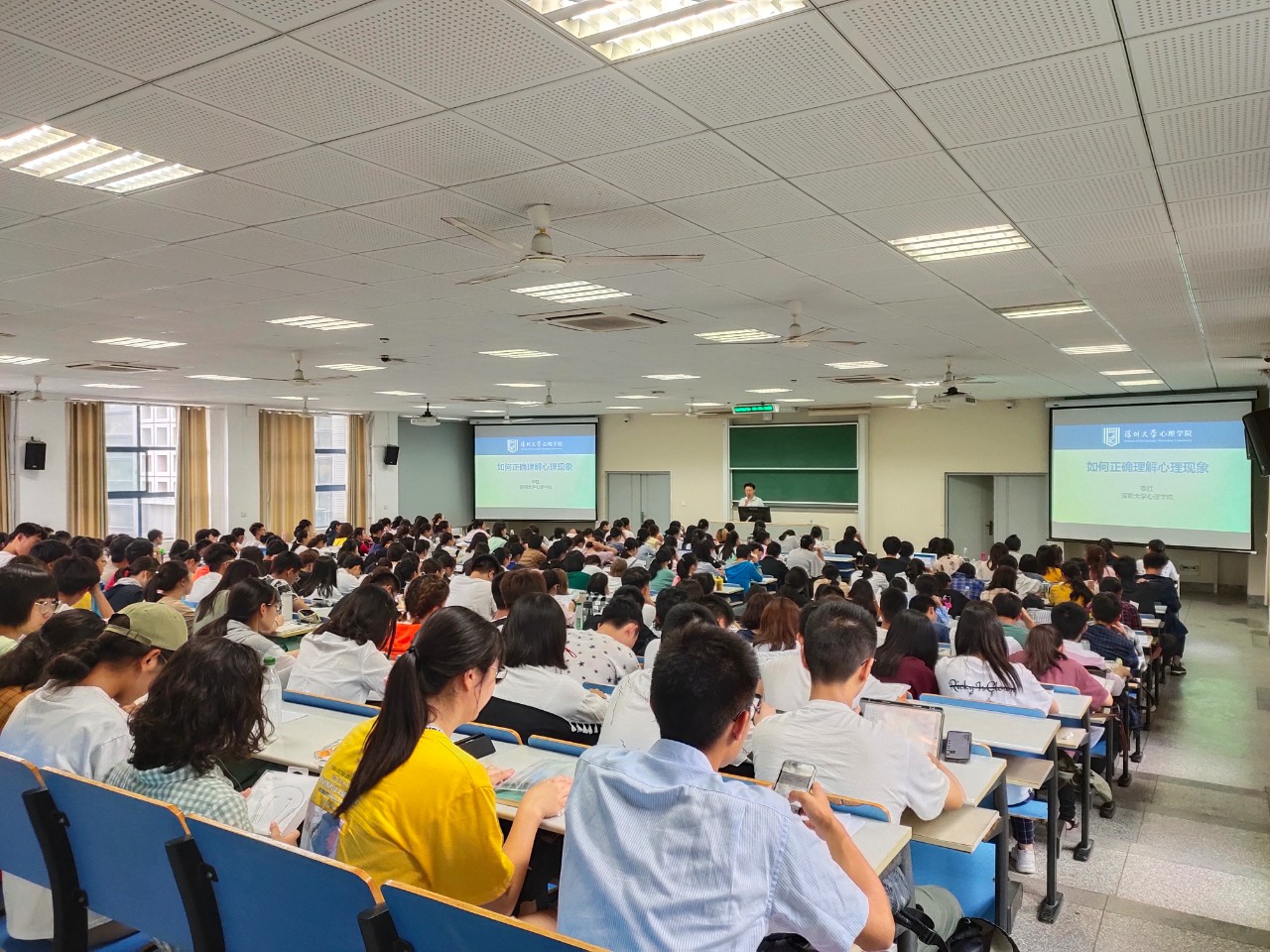 本次李老师的心理课一共有六次课的时长,课程的主题包括了“为什么要学习心理学”、“如何正确理解心理现象”以及“抗击敏感、促进健康”,向大一新生普及了心理学常识,消除了学生对心理学理解的误区,介绍了心理学的分支以及研究方法,也向大家强调了心理健康的重要性。虽然相比于其他课程,李红教授的心理课的时长要久很多,但是学生并没有因此而倦怠和厌烦;在李红教授幽默的示例和诙谐的语言,以及偶尔蹦出口的四川方言作用下,课堂气氛一直都很活跃,学生的注意力也十分集中,中间也多次爆发出热烈的掌声。只是短暂的第一次见面,李红教授就获得了秉文班学生的尊敬与喜爱,同样也十分期待下一次李红教授的到来。