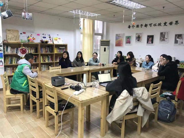 师生们在晓洁、大海两位协作者社工的陪同下,参观了位于建邺区的南京市协作者社区发展中心,并就其重点打造的社区儿童服务中心——“童缘”项目,及“四位一体”的社区流动儿童服务模式等,与机构协作者们进行了深入的学习与交流。此外,针对“流动人口社会融合,困境儿童救助”等社会问题,双方展开了热烈探讨。