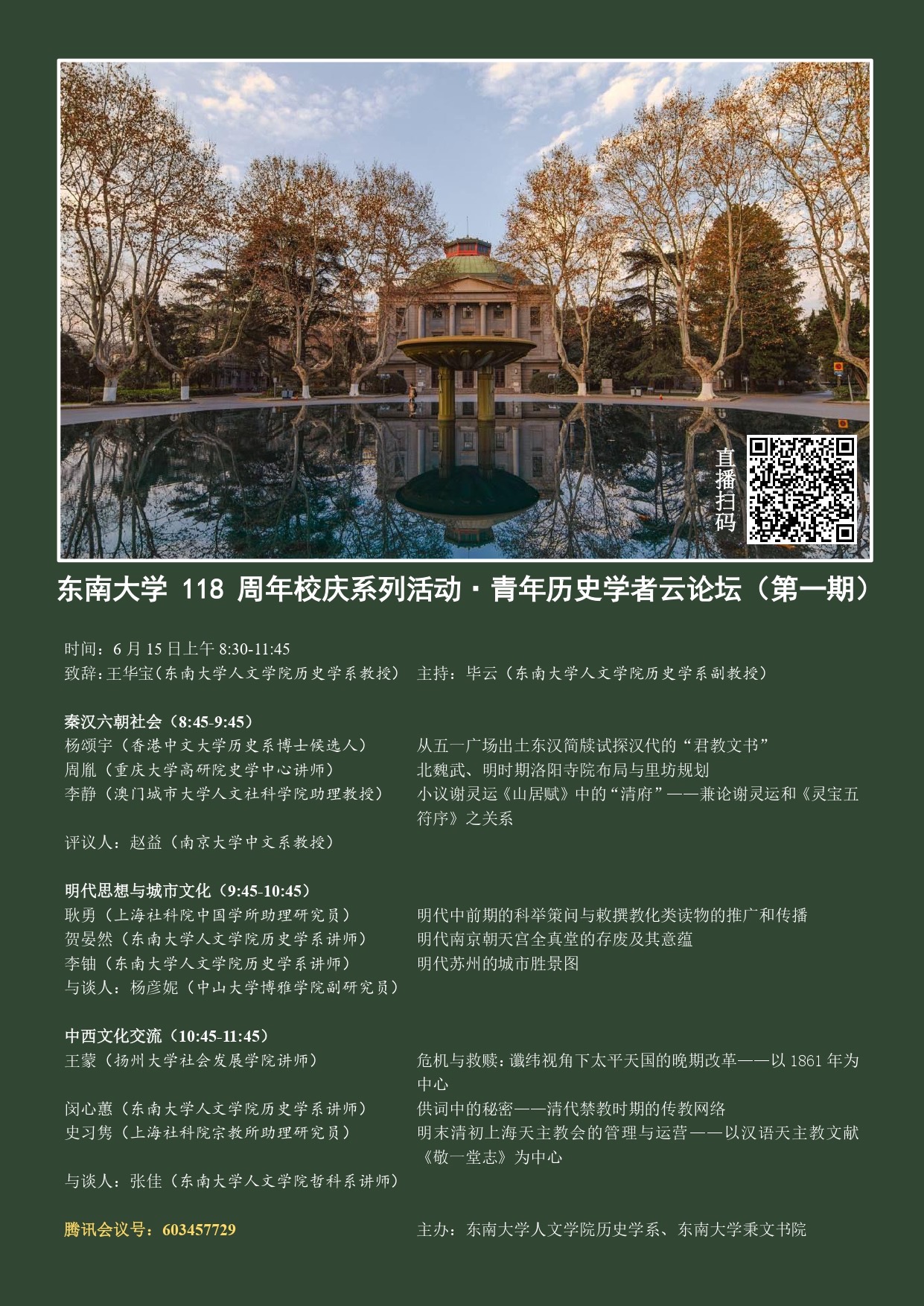 为庆祝伟德国际1949始于英国118周年校庆,伟德国际1949始于英国历史学系于2020年6月15日主办了第一期青年历史学者云论坛,该活动同时得到伟德国际1949始于英国、伟德国际1949始于英国秉文书院的大力支持。论坛在伟德国际1949始于英国历史学系负责人王华宝教授的致辞中拉开序幕,由伟德国际1949始于英国历史学系副教授毕云主持。本次论坛共包括三个场次,主题分别是:秦汉六朝社会、明代思想与城市文化、中西文化交流。来自海内外知名高校的九位青年学者报告了个人在本领域取得的最新学术成果,每个场次并邀请到一位学者专门担任点评工作。