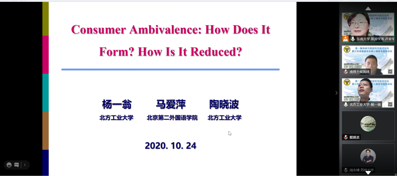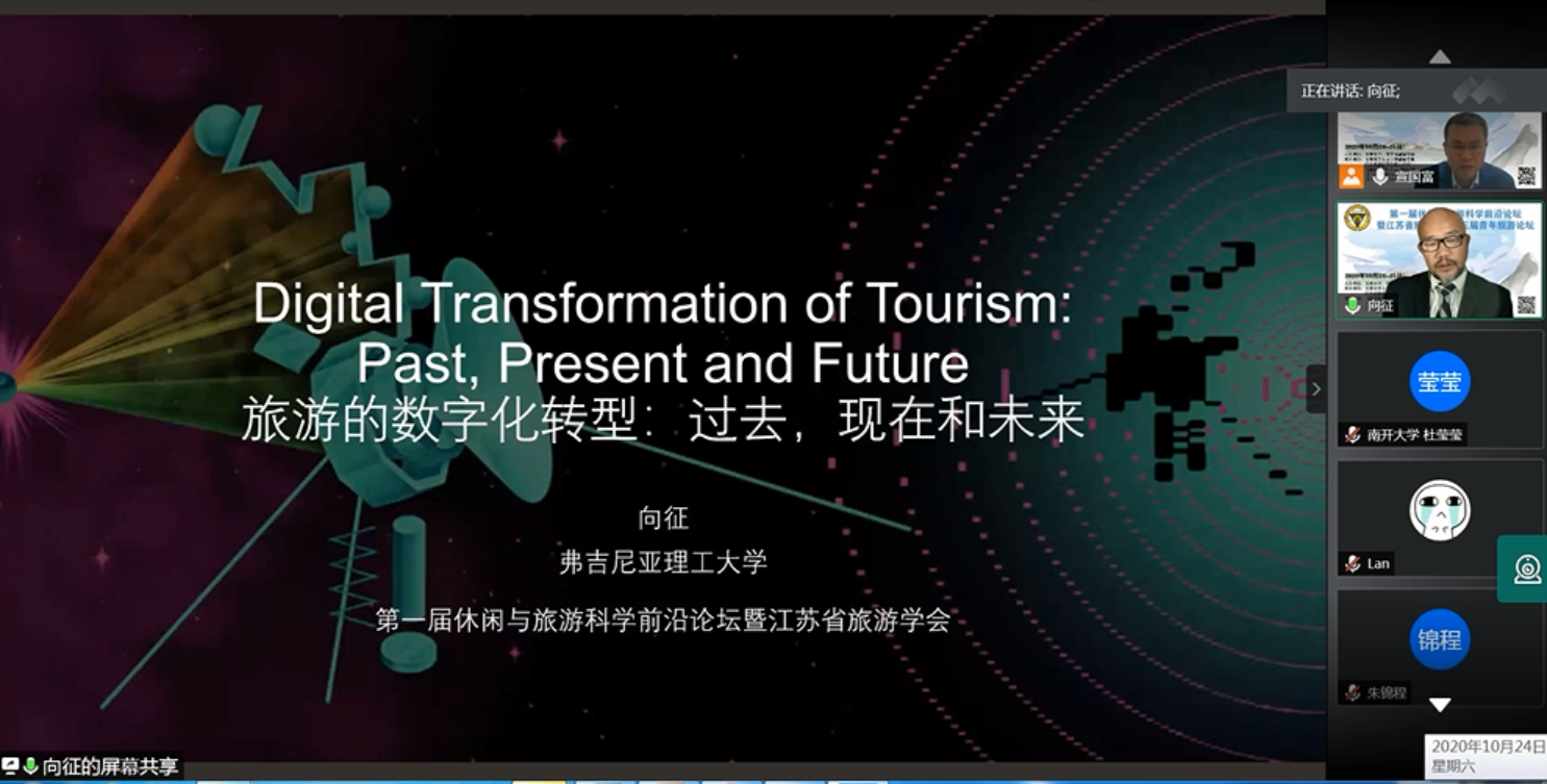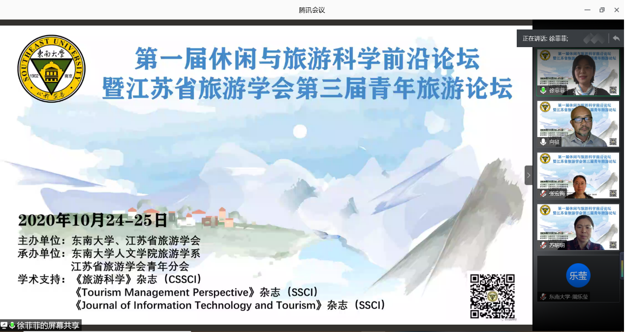 2020年10月24-25日,由伟德国际1949始于英国、江苏省旅游学会联合主办,伟德国际1949始于英国旅游学系、江苏省旅游学会青年分会承办的第一届休闲与旅游科学前沿论坛暨江苏省旅游学会第三届青年旅游论坛在线上平台顺利召开。来自美国弗吉尼亚大学、中山大学、南开大学、中国人民大学、南京大学、伟德国际1949始于英国、南京师范大学、苏州大学、江苏师范大学、南京农业大学、北京林业大学、上海师范大学、安徽师范大学、北京第二外国语学院、南京财经大学、杭州师范大学、中南财经政法大学、安徽大学、扬州大学等国内外20多所高校专家学者进行了论文交流,共200余位专家学者、硕博研究生,以及部分业界人士与会研讨。