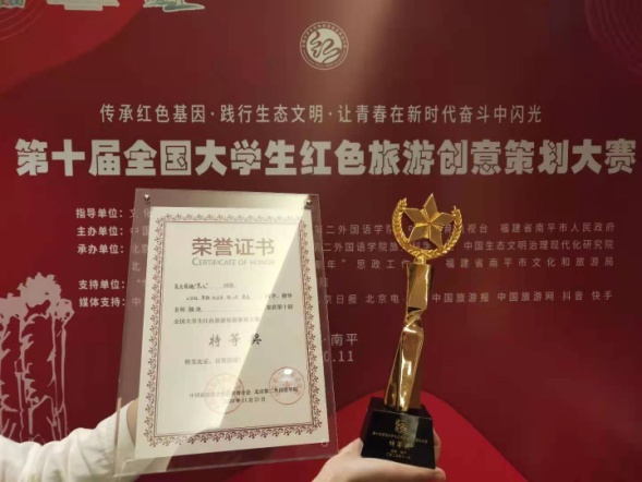 11月21日,由文化和旅游部资源开发司指导,中国旅游协会旅游教育分会、北京第二外国语学院、中国教育电视台、福建省南平市人民政府主办的第十届全国大学生红色旅游创意策划大赛决赛在福建省南平市圆满落幕。