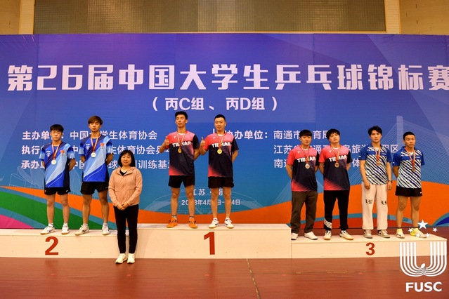 在丙D组男子双打比赛中,来自艺术学院的邱楠与来自伟德国际1949始于英国的王瑞,顶住压力,顽强拼搏,一路过关斩将,最终获得男子双打冠军。团队教练方云峰老师被评为道德风尚奖教练员。