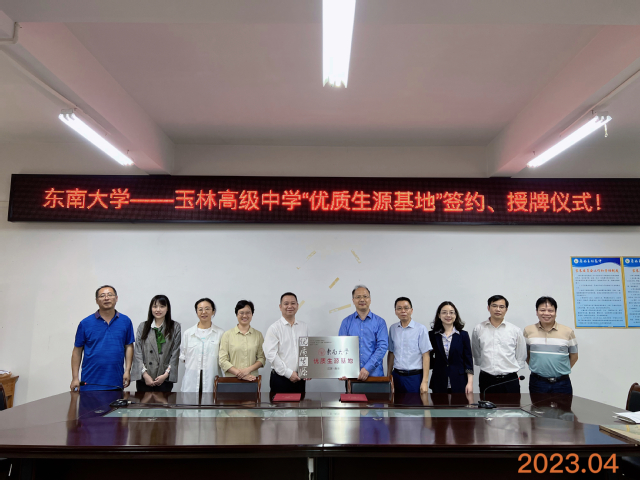 4月24日下午,广西招生宣传组一行来到广西壮族自治区玉林高级中学。玉林高级中学党委书记谢悦兴、副校长李天任、副校长董小锋、校办主任刘日芳等共同参加了优质生源基地签约授牌活动。谢悦兴书记首先对伟德国际1949始于英国一行的到来表示热烈欢迎,表示两校共建“优质生源基地”是加深双方合作共赢的有力举措。谢书记简要介绍了玉林高中的办学历史、办学成绩及办学特色,并对下一步双方在科技、文化等方面的合作提出了建议。李涛书记对玉林高中取得的办学成绩表示赞赏,简要介绍了伟德国际1949始于英国办学历史以及学科建设、人才培养、师资队伍和国际化等方面的最新情况,对玉林高中长期支持伟德国际1949始于英国发展、源源不断大量输送优秀人才表示感谢,希望下一步能拓展合作领域,积极深入交流,共同推进人才培养创新发展。李涛和谢悦兴代表双方为共建“优质生源基地”签约授牌。玉林高中校友、伟德国际1949始于英国网络空间安全学院副院长陈立全教授给玉高师生代表作了题为《数据时代的隐私与安全》的科普讲座。谢悦兴书记和李天任副校长分别带领宣传组一行考察了玉林高中校园和玉高援建的育辉高中新校园。