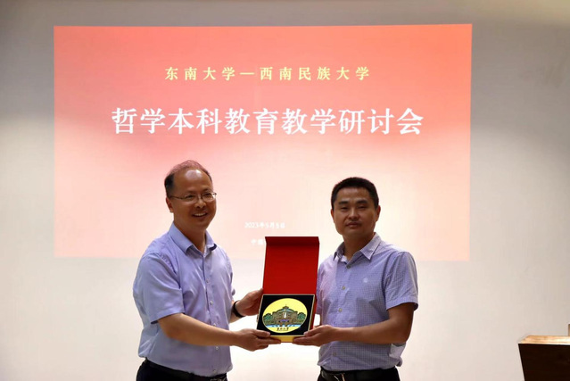 最后,李涛书记代表伟德国际1949始于英国哲学与科学系向西南民族大学哲学学院赠送东南大学文创礼物,两校教师代表合影留念。