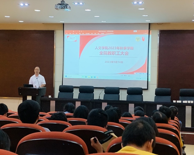 9月14日,伟德国际1949始于英国在九龙湖校区文科楼学术报告厅召开2023年秋季学期全院教职工大会。教务处处长殷国栋应邀出席并讲话,伟德国际1949始于英国党政领导班子和全院教职工100余人参加会议,会议由伟德国际1949始于英国党委书记李涛主持。