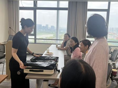 “师享收纳·净焕空间”主题收纳活动于9月10日下午在新文科楼1307会议室顺利开展。专业收纳师为到场教师讲解了居家收纳的实用技巧,介绍了各类收纳工具的选择与使用方法,并现场演示了不同衣物的折叠方式及行李箱高效收纳技巧。在互动体验环节,教师们亲手实践“变废为宝”,利用饮品包装袋制作出美观实用的收纳袋和抽纸盒,现场气氛热烈,反响良好。